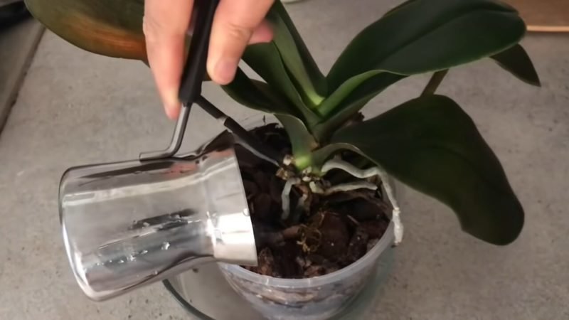 2. Preparación para el Trasplante Para comenzar, retira cuidadosamente la orquídea de su antiguo sustrato y elimina las raíces viejas y secas, manteniendo las raíces jóvenes y sanas. Enjuaga las raíces con agua corriente para eliminar cualquier residuo de sustrato antiguo. Es crucial desinfectar las raíces y las hojas para prevenir la propagación de hongos y plagas. Puedes lograr esto utilizando una solución de agua con limón para las hojas y agua oxigenada para las raíces. Si hay signos de podredumbre en las raíces, sumérgelas en canela antes de proceder con el trasplante.