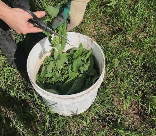 - Coloque las ortigas en un balde y agregue agua.