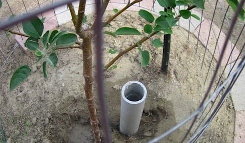 - Riego: Vierte agua directamente en la tubería de PVC. El líquido se filtrará por los agujeros llegando precisamente a las raíces, asegurando un riego eficiente y profundo.